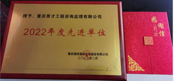 2023年2月3日,育才公司榮獲重慶城投基礎(chǔ)設(shè)施建設(shè)有限公司“2022年度先進(jìn)單位”稱號(hào)。